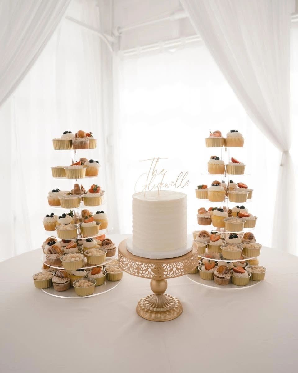 Couples absolutely love our cupcake towers! They offer a fun and visually stunning centerpiece that's mess-free and easy for guests to enjoy. Plus, with a variety of flavors, there's something for everyone to savor.